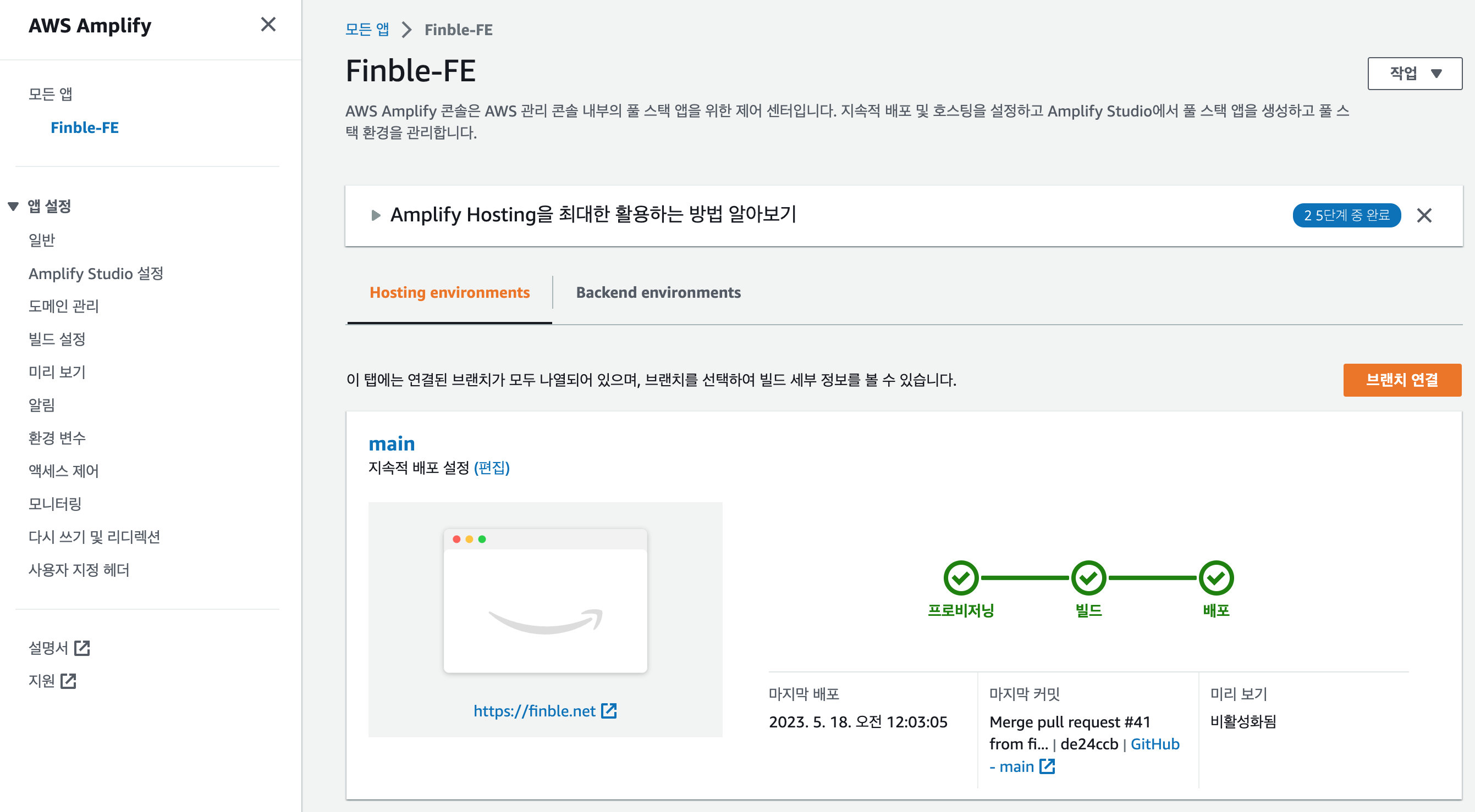 위에서 말한 자유도가 높다!! 라는 것은 인프라, 백엔드 등에 주로 해당되는 얘기이고 난 프론트엔드 배포만 진행했기 때문에 AWS 가 제공하는 서비스 중 개발 플랫폼인 AWS Amplify를 사용했다. AWS는 프론트엔드 배포를 위해 Amazon S3, CloudFront, Amplify 등 다양한 서비스를 제공하는데, 이것만 봐도 AWS가 얼마나 다양한 서비스를 제공하는지 알 수 있다..ㅎㅎ 아무튼 내가 Amplify만 이용했을 때는 레포 권한을 등록해주면 알아서 CI/CD를 구축해주고 커스텀 도메인도 따로 등록할 수 있어서 편리하다고 느껴졌다.